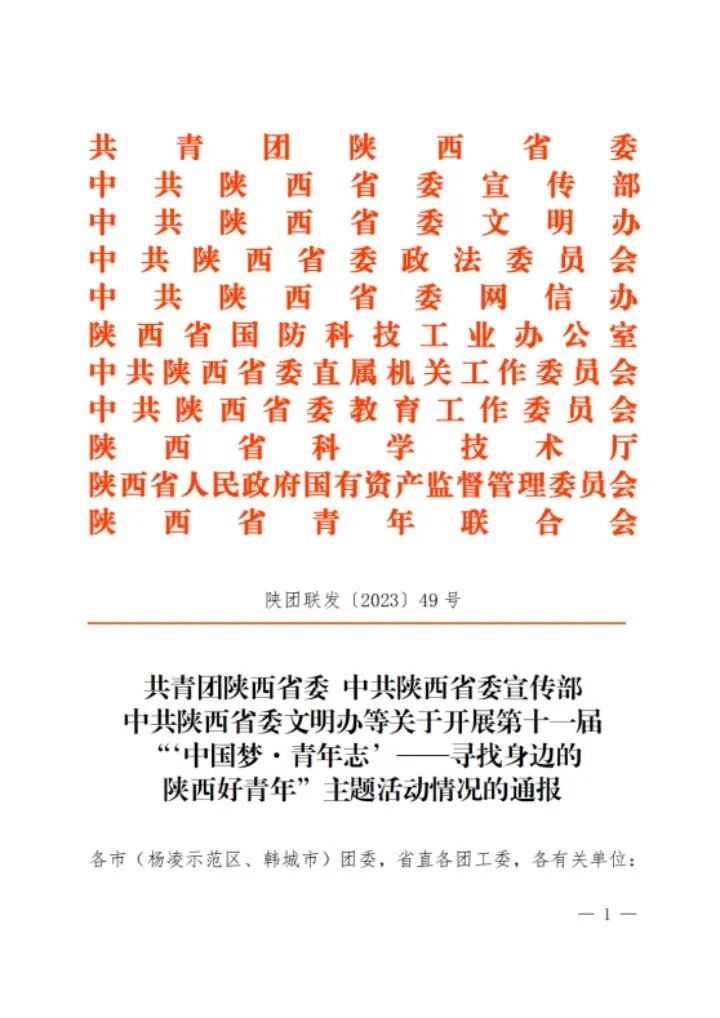 近日,由团省委、省委宣传部、省委文明办、省委政法委、省委网信办、省委军民融合办、省委直属机关工委、省委教育工委、省科技厅、省国资委、省青联等单位共同举办的第十一届“‘中国梦·青年志’——寻找身边的陕西好青年”主题活动结果揭晓,我院自主水下航行器团队被推选为第十一届“陕西好青年”集体。据悉,本次活动经推报、初选、复核、展示、评审、公示等环节,共30个集体和61名个人获评第十一届“陕西好青年”称号。