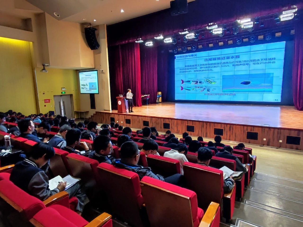应上海复旦附中青浦分校邀请,5月15日下午,国家级教学名师、永利集团官网院长潘光教授走进复旦附中青浦分校,为200多名高中生做了题为《仿蝠鲼柔体潜水器研制》的科普讲座。讲座内容丰富、深入浅出,赢得了阵阵掌声,为同学们种下了海洋科学的种子。