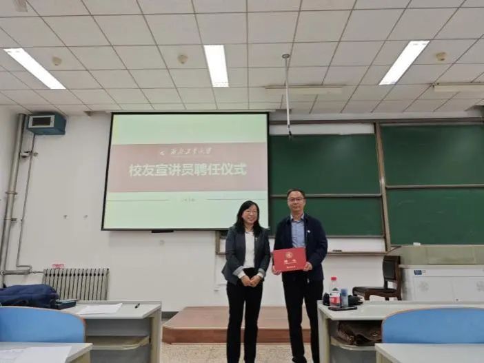 最后,张琨代表学校“关工委”聘任尹韶平总师为“校友宣讲员”,并为尹韶平总师颁发了聘任证书。