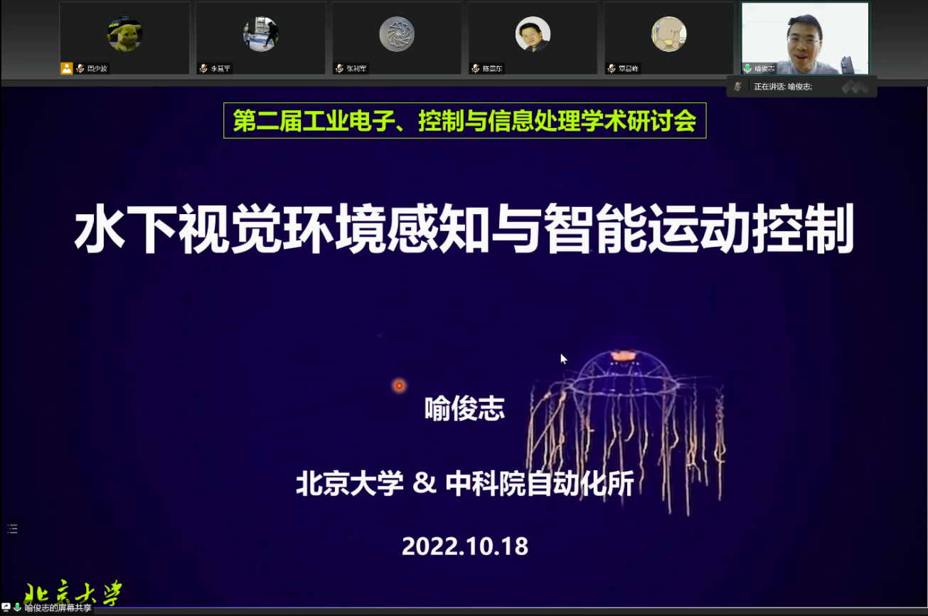 随后,来自工业电子、控制和信息处理领域的知名专家为大会奉献了6场精彩的报告。施阳教授作题为《Self-Triggered Adaptive Model Predictive Control for Constrained Nonlinear Systems》报告,李少远教授作题为《复杂生产条件下流程工业系统操作优化与预测控制》报告,陈景东教授作题为《麦克风阵列设计与处理方法及其在极端环境中的应用》报告,徐昕教授作题为《基于学习的非线性预测控制及应用》报告,柴利教授作题为《Convergence Rate of Accelerated Average Consensus with Local Node Memory》报告,喻俊志教授作题为《水下机器人视觉感知与智能运动控制》报告。