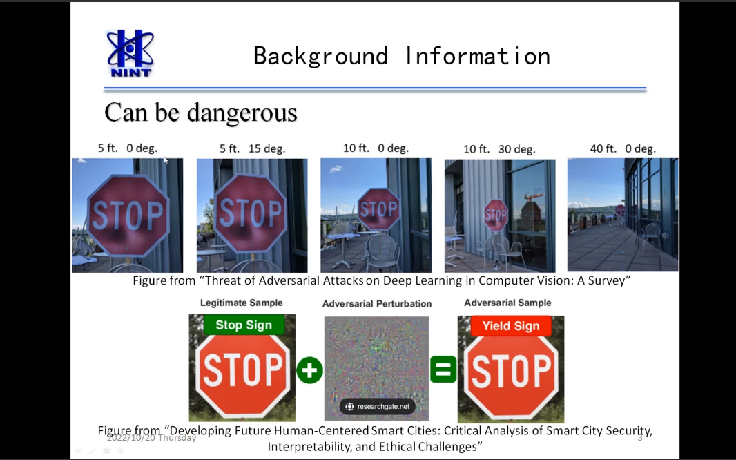 张俊杰从神经网络在图像识别工业应用中容易出现的鲁棒性弱的问题出发,介绍了在神经网络的准确性和鲁棒性之间或多或少存在着权衡,且这种权衡是固有的,其基本机制与量子力学中的不确定性原理有很大关系。并从量子力学的角度,介绍了要使一个神经网络既准确又鲁棒,需要分别解两个共轭部分x(输入)和∆(归一化损失函数J相对于x的导数)的特征。类似于量子力学中的位置-动量共轭,输入和它们的共轭不能被神经网络同时解决。