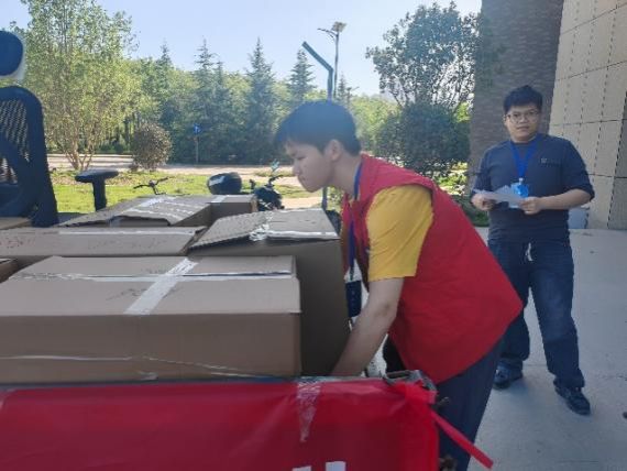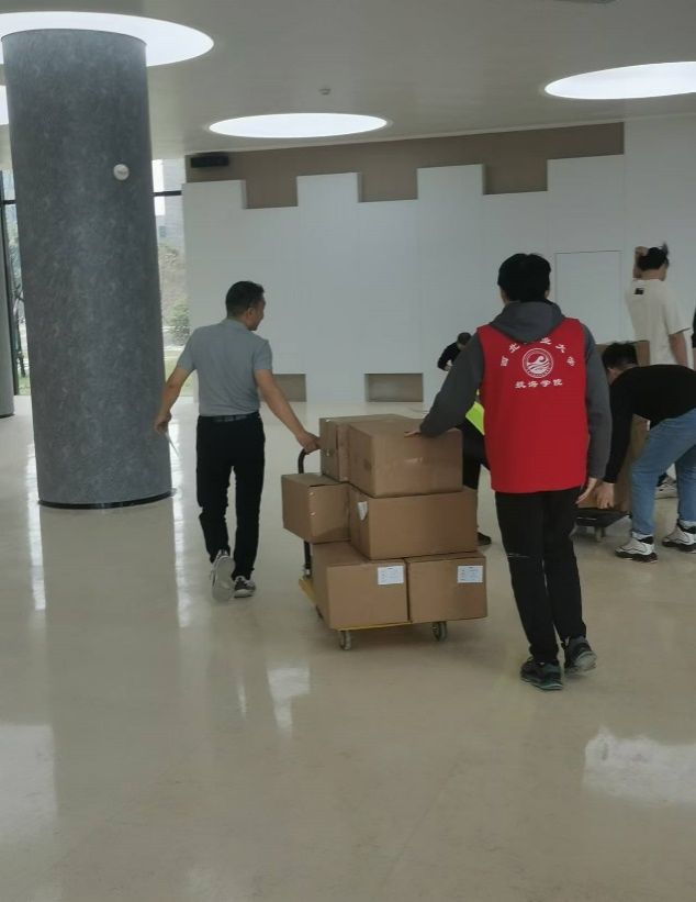 搬迁工作,志愿者们在不同的岗位上积极开展服务。在翱翔重点实验室,第一组志愿者负责协助工作人员进行物品整理、分类、打包及搬运工作,确保每一件物品都能够按计划顺利搬出。与此同时,第二组志愿者在海天苑大楼做好接收工作确保每一件物品都能顺利搬进新教研室。整个搬迁过程中,志愿者们紧密配合,高效有序,展现出极高的责任感。搬迁期间,未发生一起物品丢失或错拿事件。
