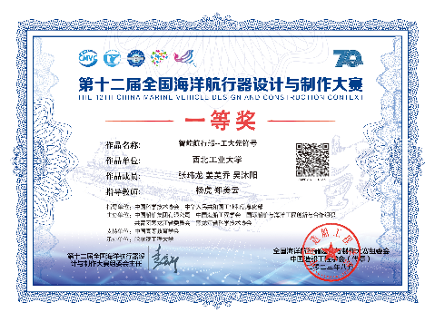 除了认真学习课业内容,吴沐阳还主动学习各种软硬件开发技能,例如嵌入式开发技术、结构设计技术、电路设计技术,以及其他辅助仿真与分析方法等,不仅充实了自己的课余生活,还为今后的学习与科研工作打下了坚实基础。同时,他将学习到的各类技能融入到学科竞赛中,2023年6月参加了西北赛区的海洋航行器设计与制作大赛,并在晋级后参加了第12届全国海洋航行器设计与制作大赛,获得国家级一等奖。